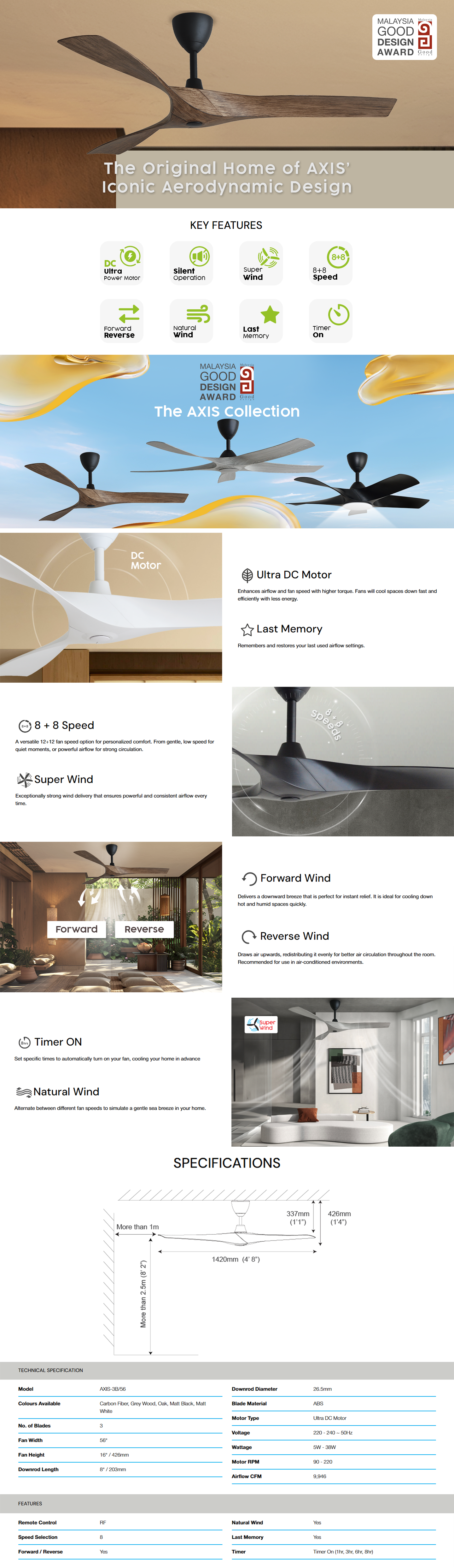 ALKOVA CEILING FAN AXIS 3B/56 (WITHOUT LED)
