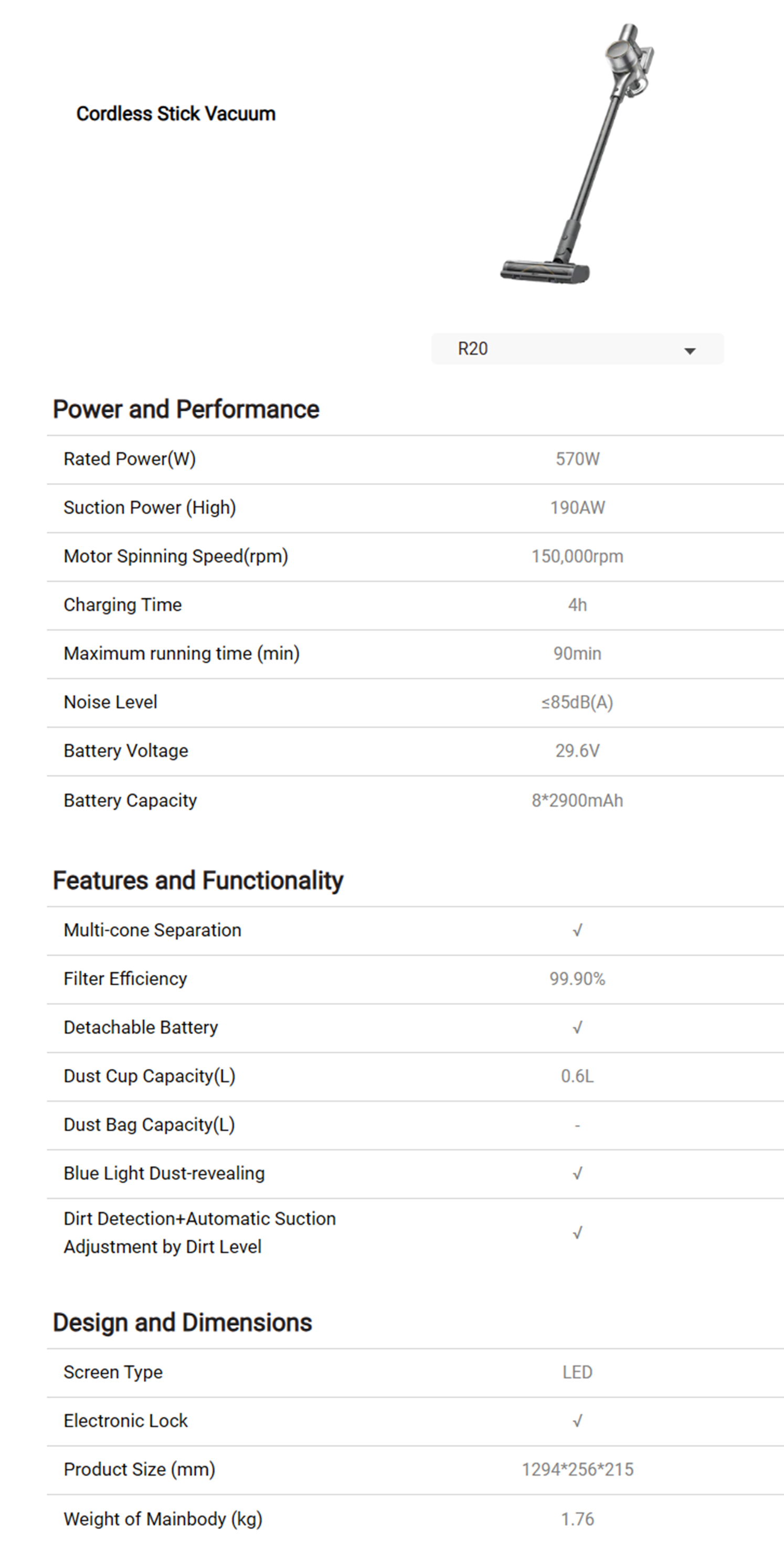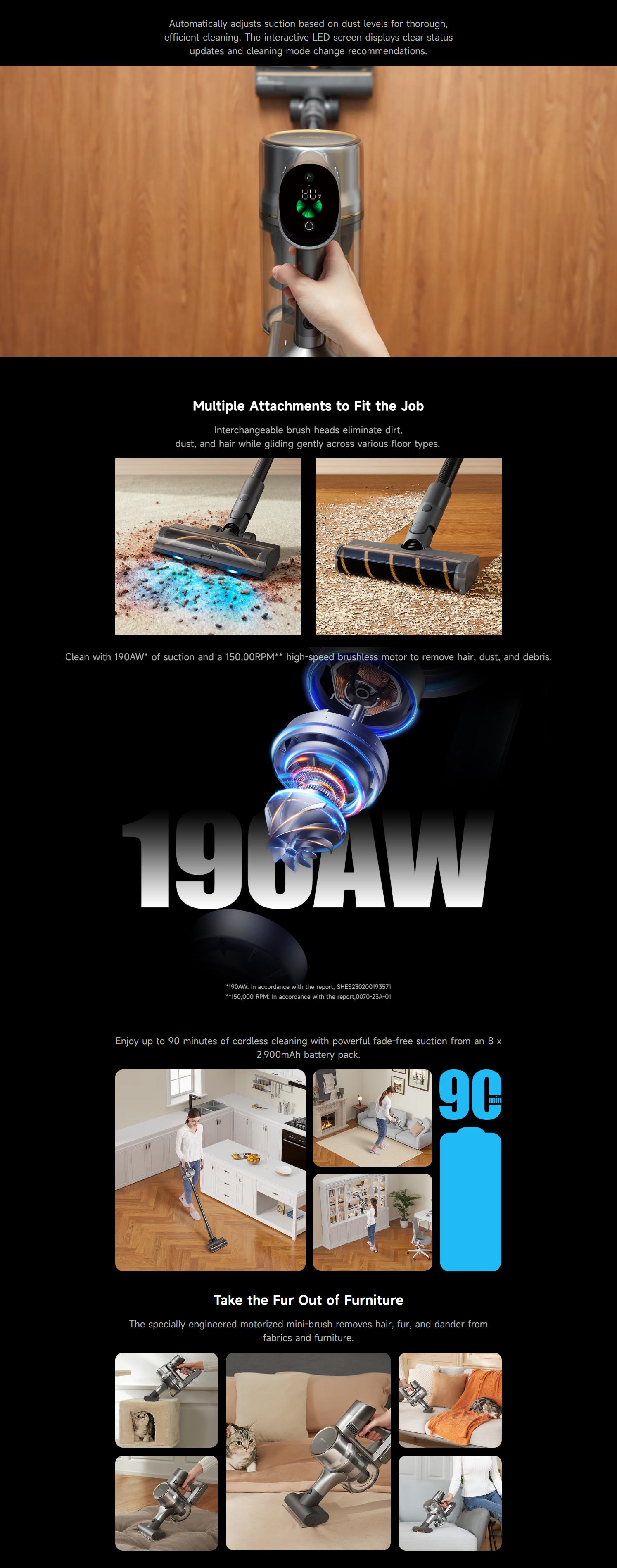 • Powerful 190AW suction