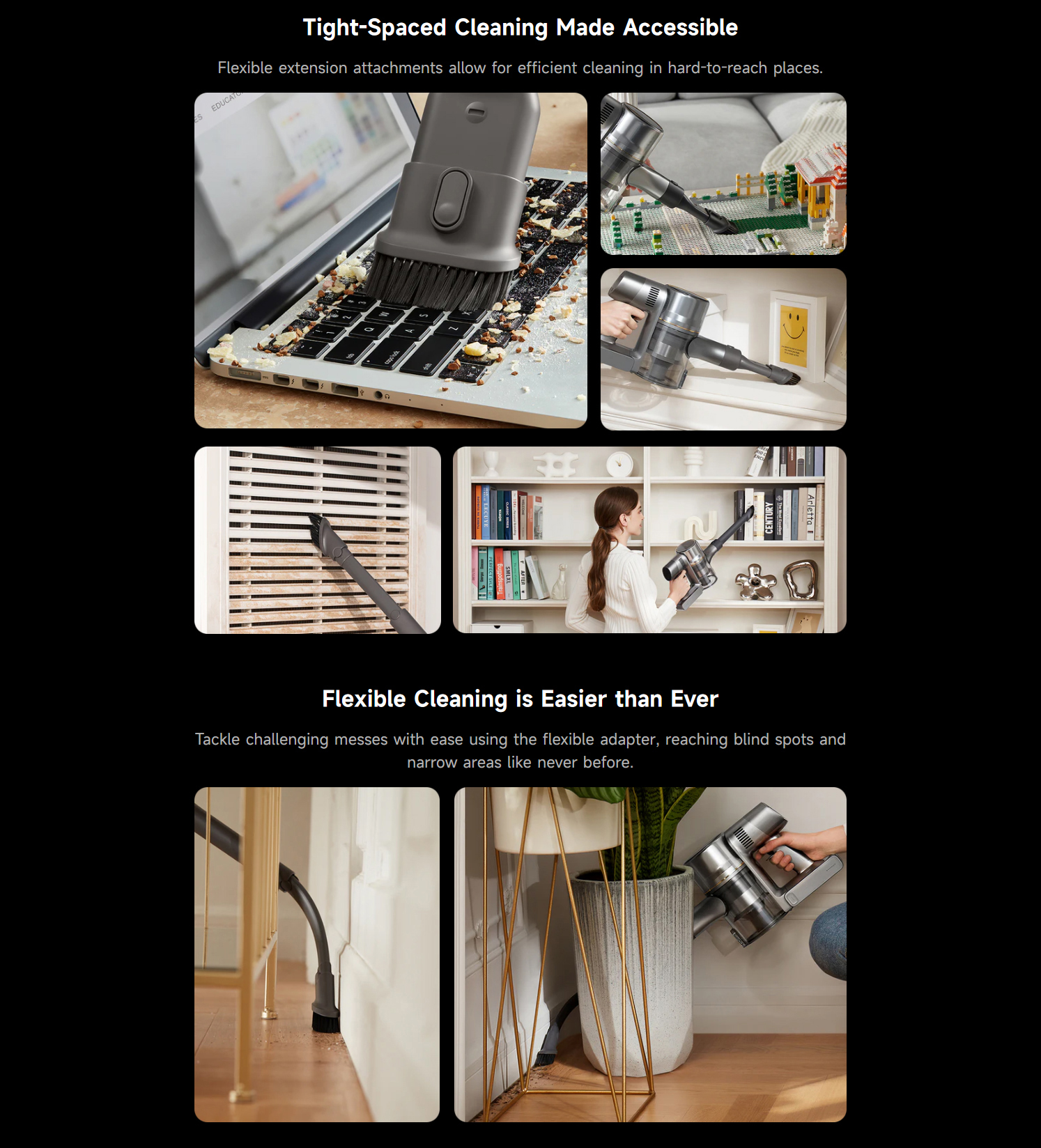 • Auto adjusts suction by dirt detection