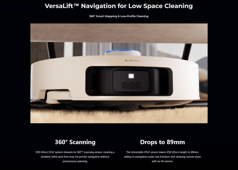 • A minimum height of only 8.9 cm thanks to a retractable lidar sensor.