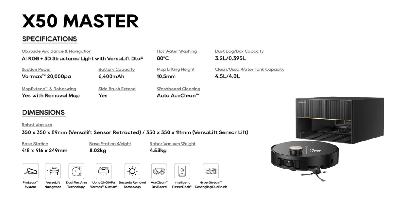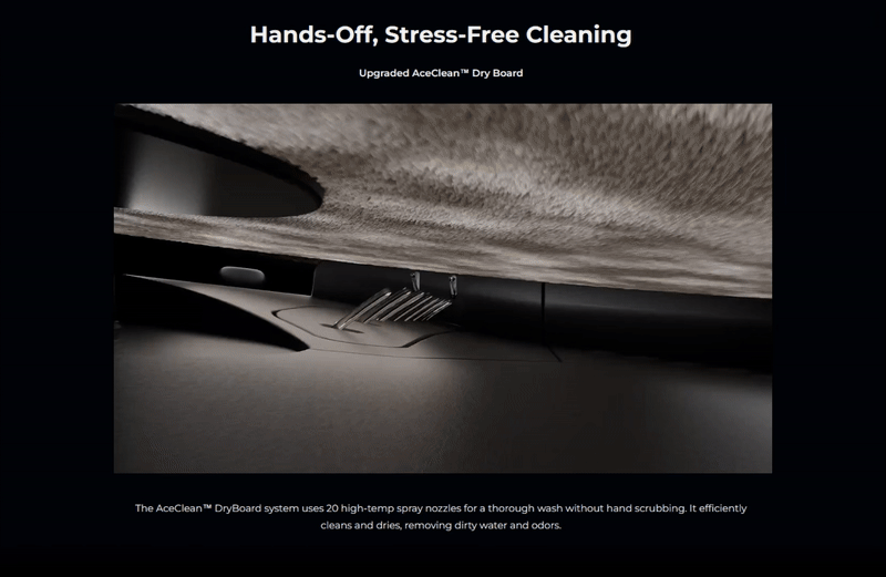 • An ultra-complete station that drains, washes at 80°C , dries and fills the water tanks automatically.