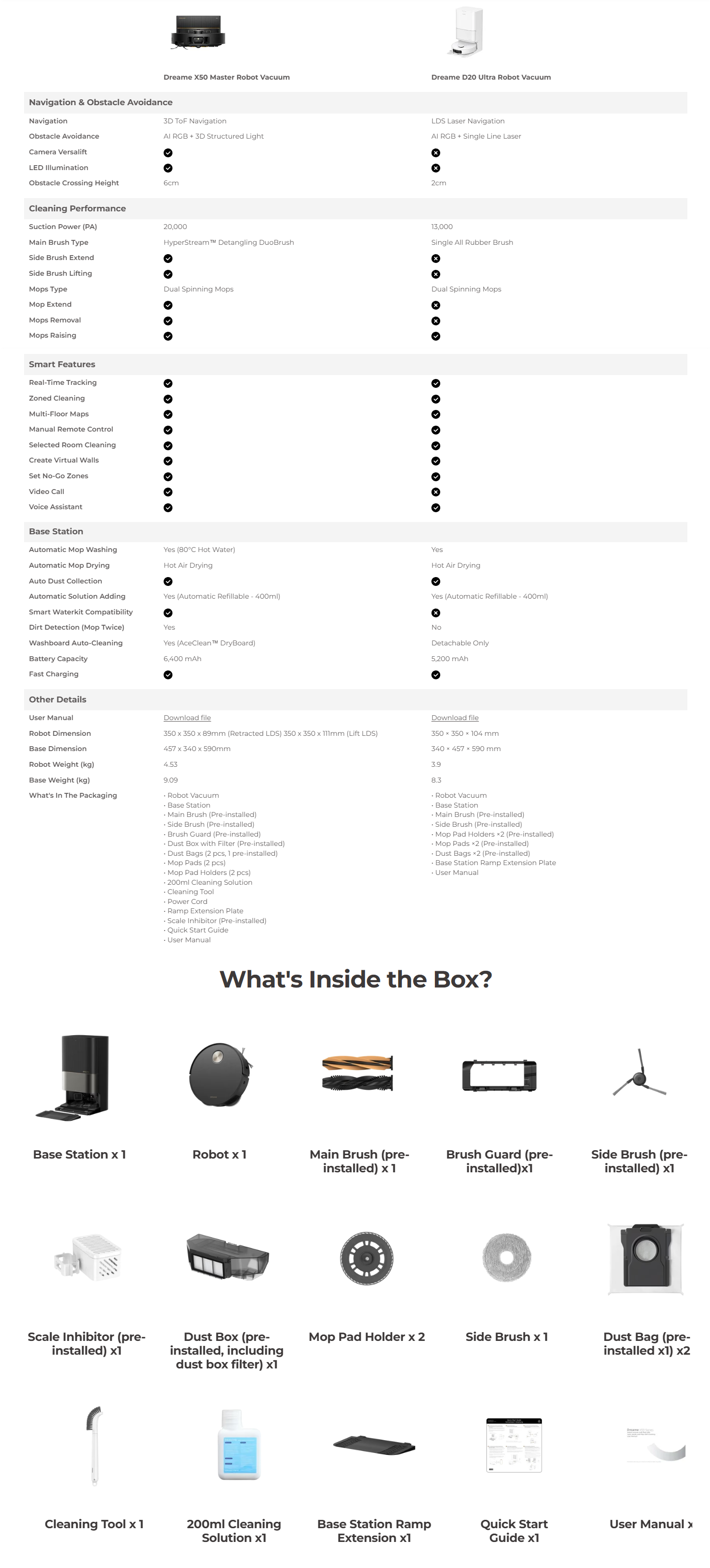 • Record suction of 20,000 Pa to tackle everything, even on thick carpets.