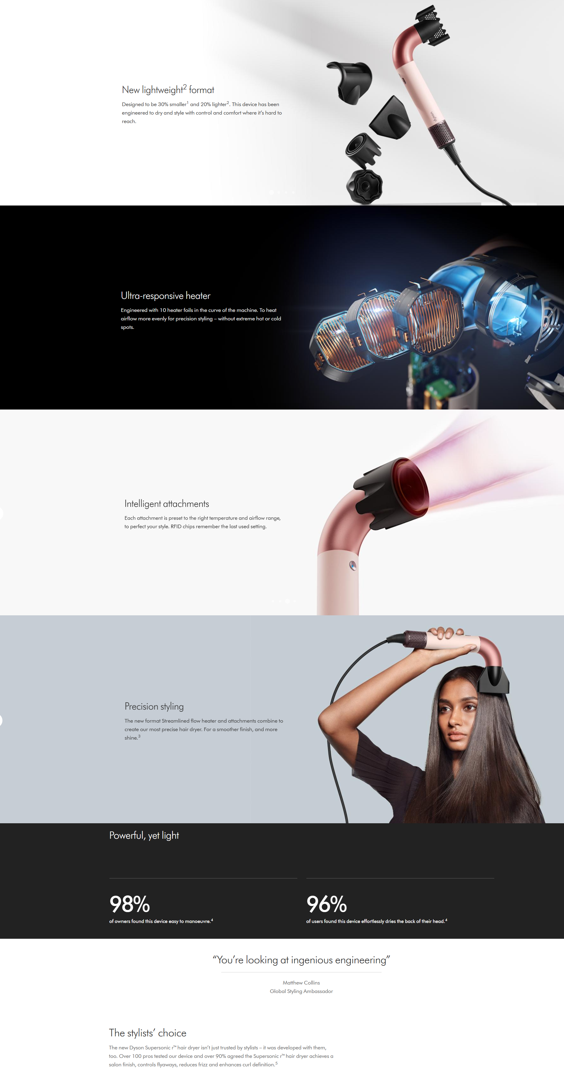 • Our most powerful,1 yet lightest2 hair dryer.