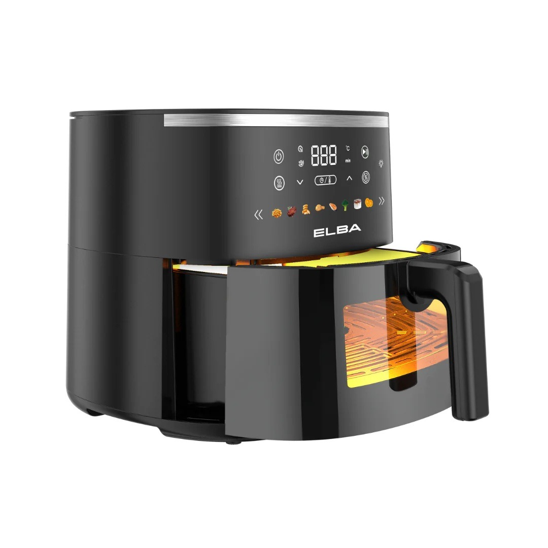Experience healthier, fuss-free cooking with the ELBA Air Fryer. A modern touch control panel with color icon display and 8 smart preset cooking recipes makes meal prep effortless. The observation window with built-in lamp lets you monitor every crisp and sizzle without opening the basket, while the keep-warm function ensures food stays at the perfect temperature until serving.