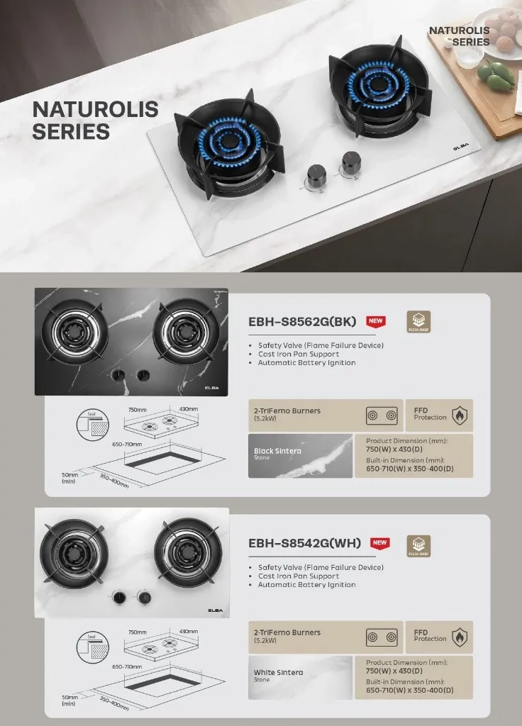 ELBA NATUROLIS BUILT-IN GLASS HOB EBH-S8542G(WH) / EBH-S8562G(BK)