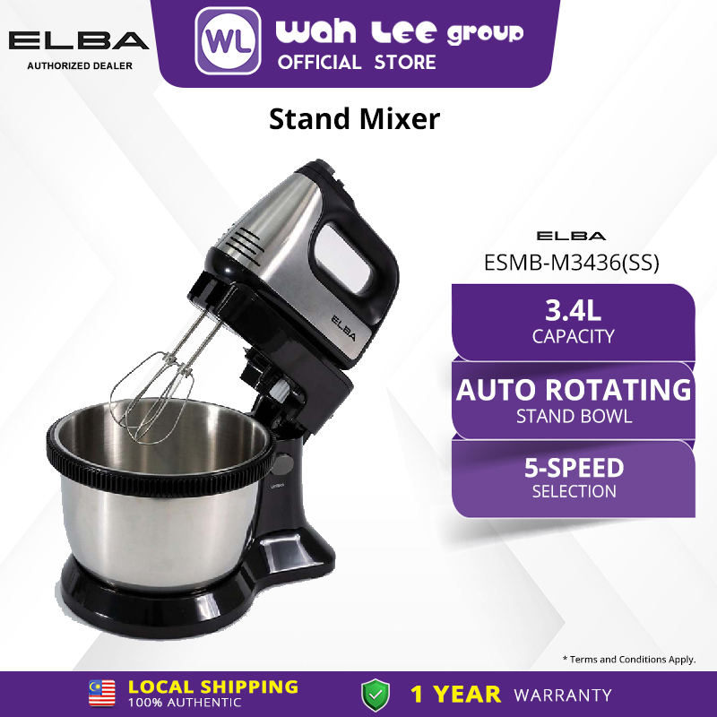 ELBA Stand Mixer ESMB-M3430(WH) - 5-speeds, Turbo Function, Auto Rotating Stand Bowl, White (3.4L / 300W)
