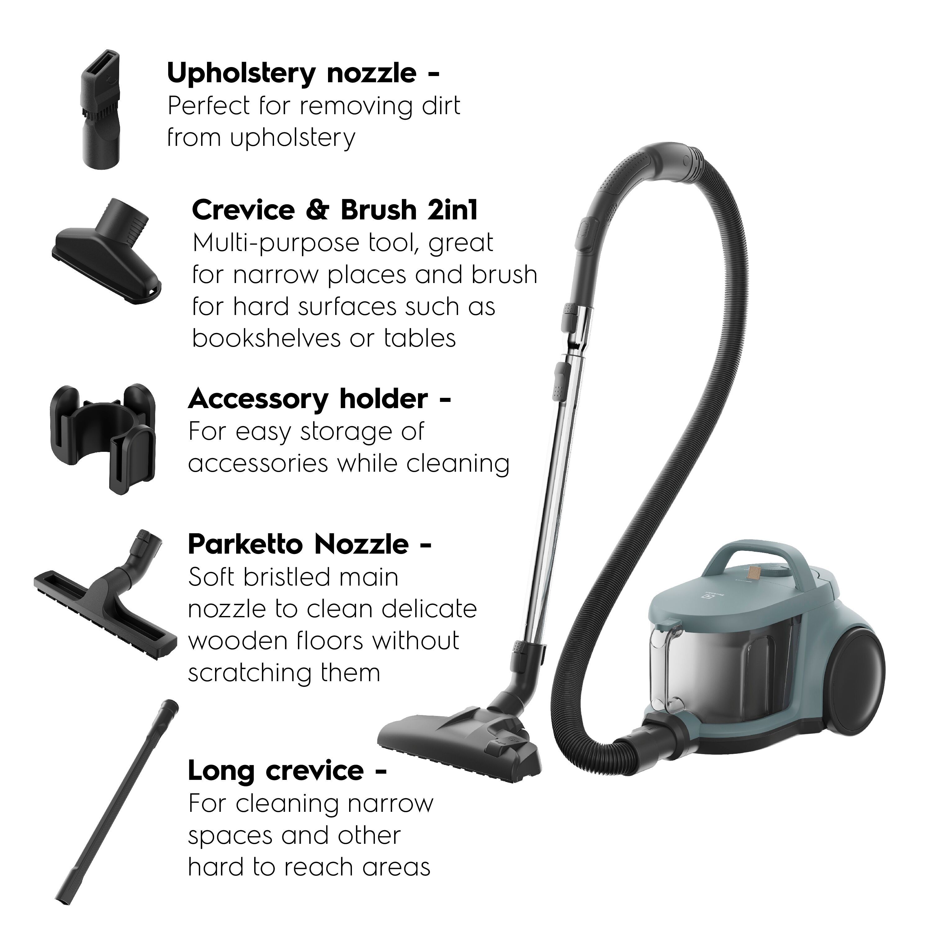 • Strong suction power and new nozzle for efficient dust pick-up.