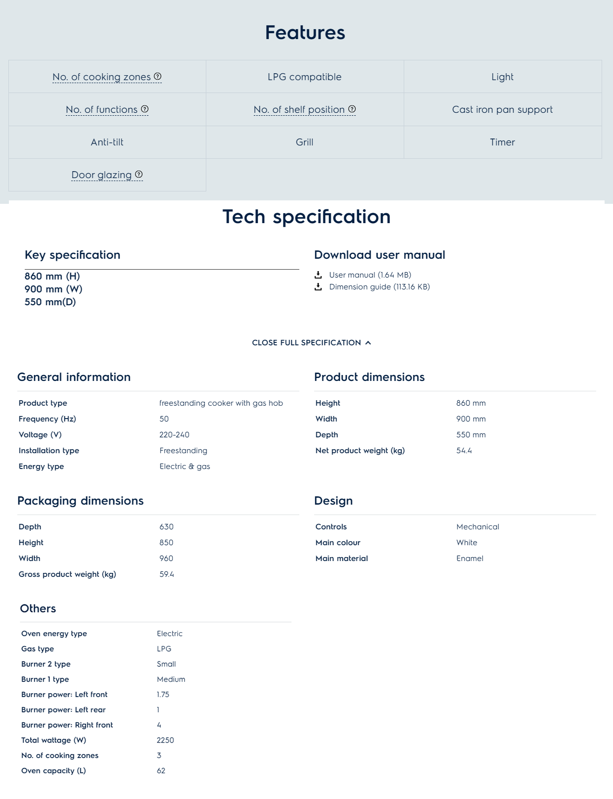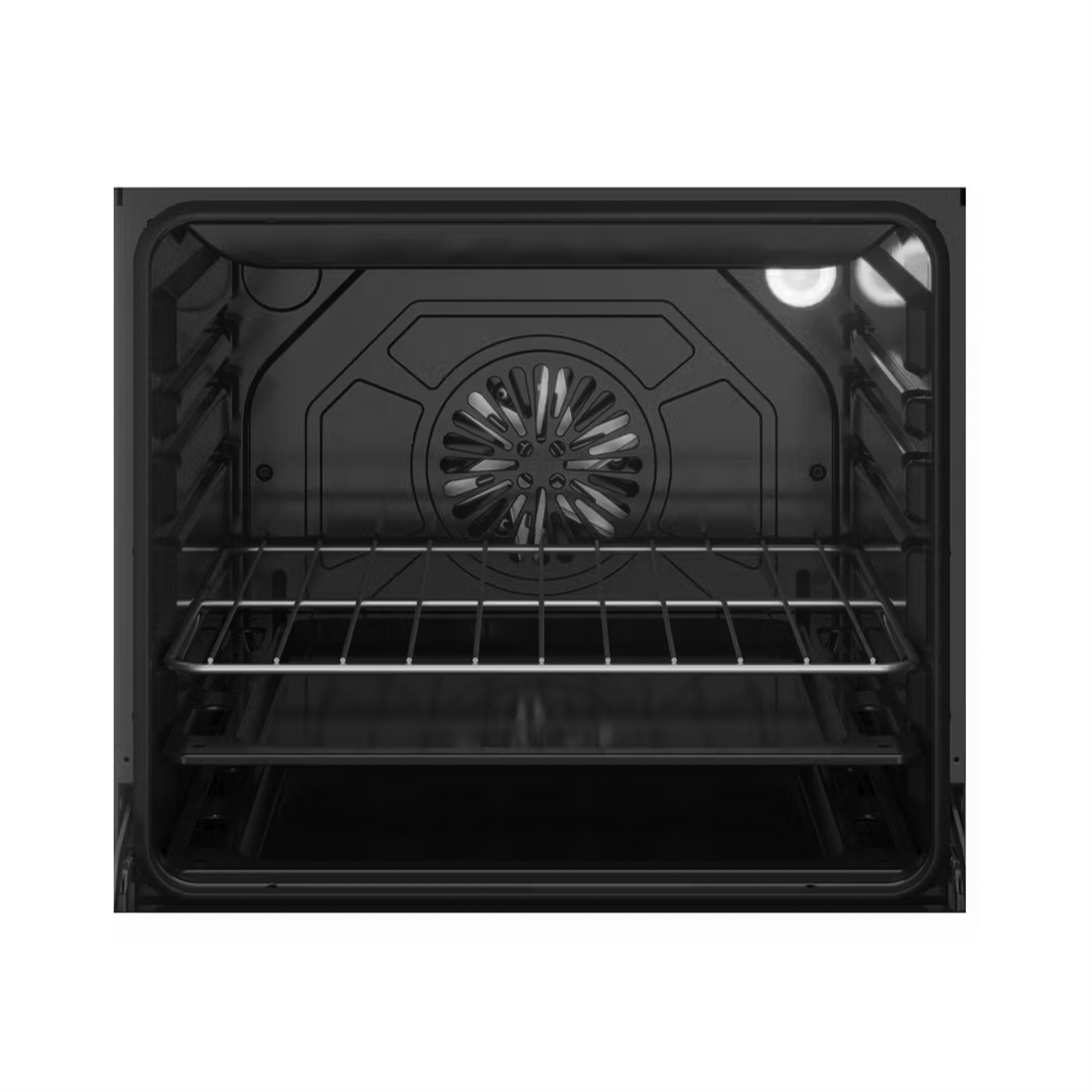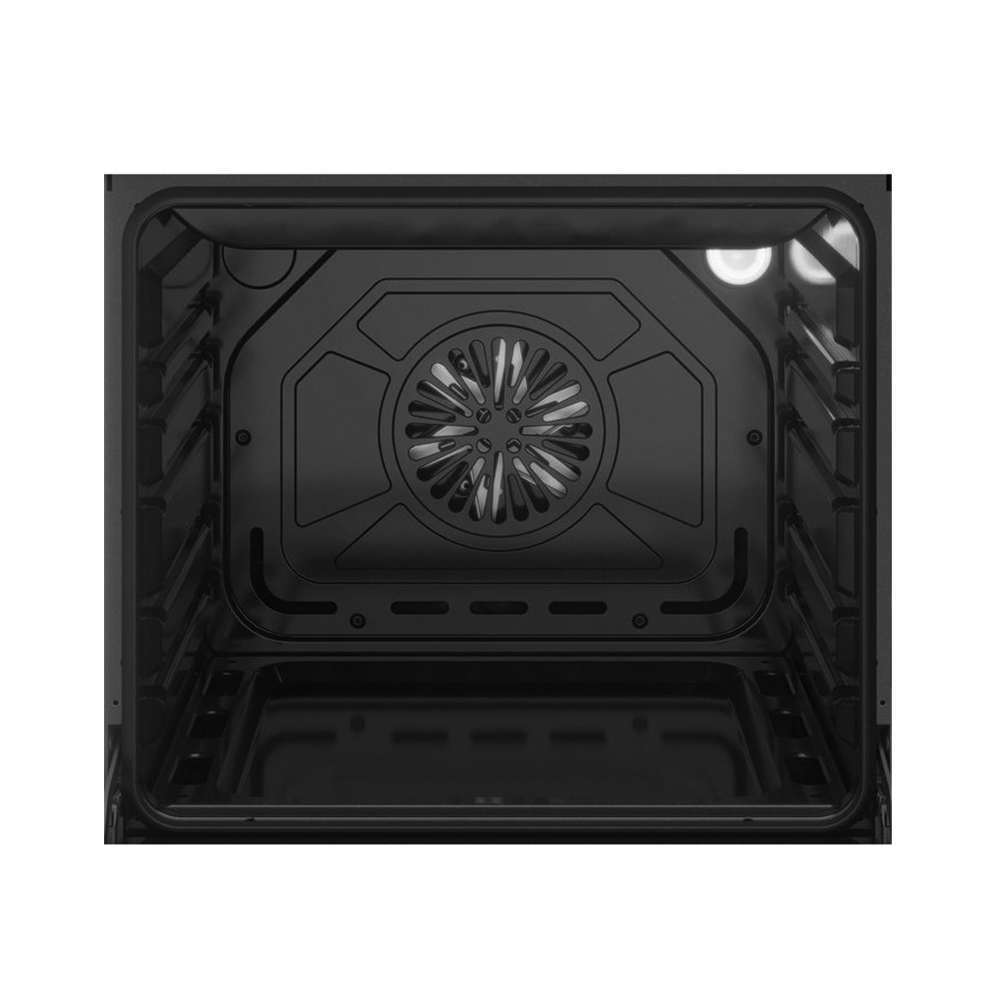 The double-glazed door makes the oven safe and cool to touch on the outside, while the internal reflective glass sheet directs heat back into the oven