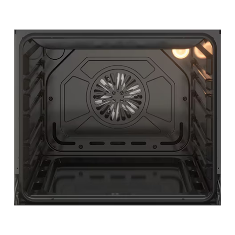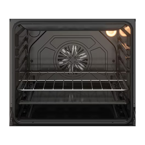 The double-glazed door makes the oven safe and cool to touch on the outside, while the internal reflective glass sheet directs heat back into the oven