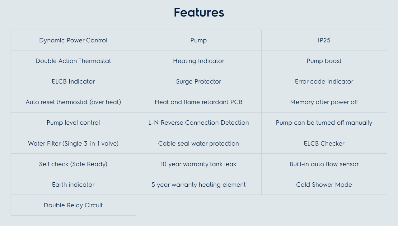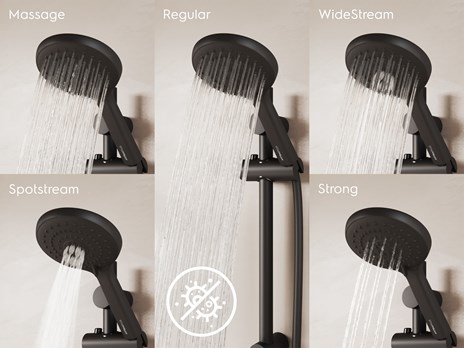 This premium accessory is designed to enhance your health and wellbeing with every shower. The built-in AntibacPlus shower head coating provides an antibacterial treatment that reduces up to 99% of harmful bacteria¹. The shower head comes with a choice of five spray settings tailored to your desired water pressure: Regular, Strong, Massage, SpotStream, and WideStream. Shower in style with the Matt Black design which complements your water heater while bringing modern elegance to every bathroom decor