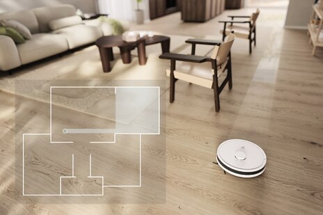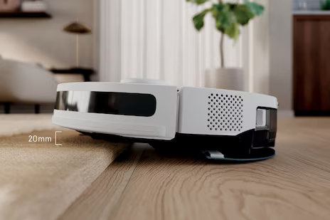 Precise Lidar technology maps your home's floor layout allowing seamless and safe navigation around furniture. This robust robot vacuum is able to climb up to 20mm ledges¹ such as low doorsteps and carpet edges, while the integrated cliff sensor prevents falls², for uninterrupted cleaning and your peace of mind.