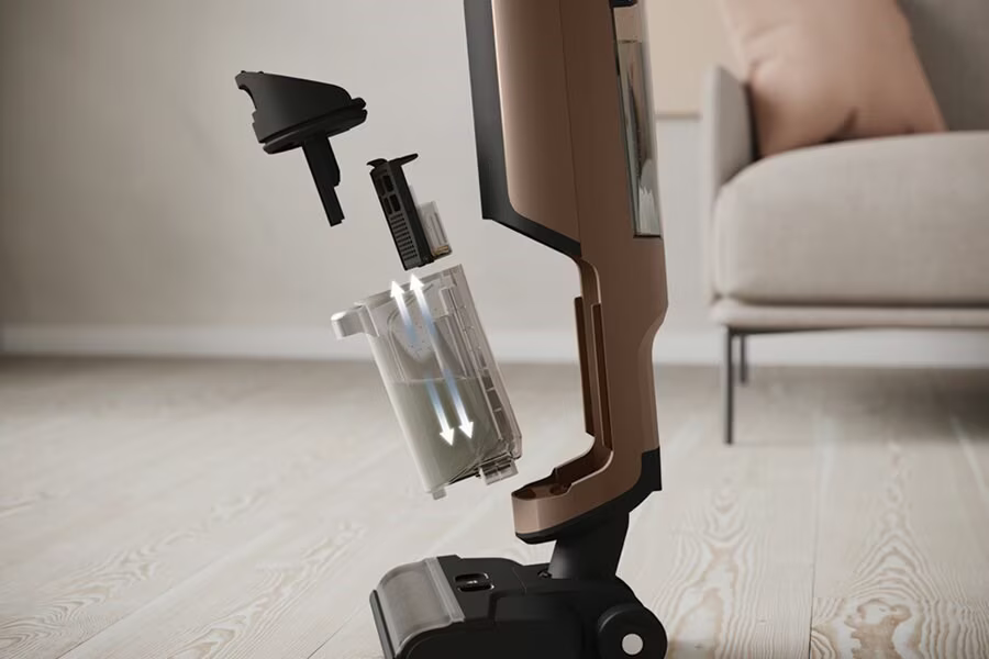 Maintain your dirty water tank with ease. Simply clear the solid waste filter of captured larger debris and hair and return the clean filter to the tank.