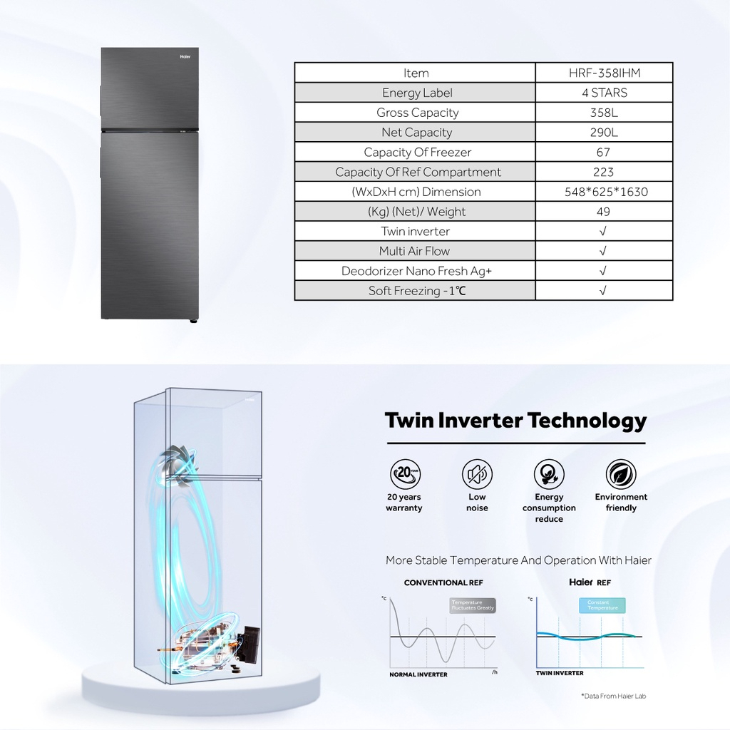 HAIER FRIDGE HRF-358IHM (358L) METAL BLACK