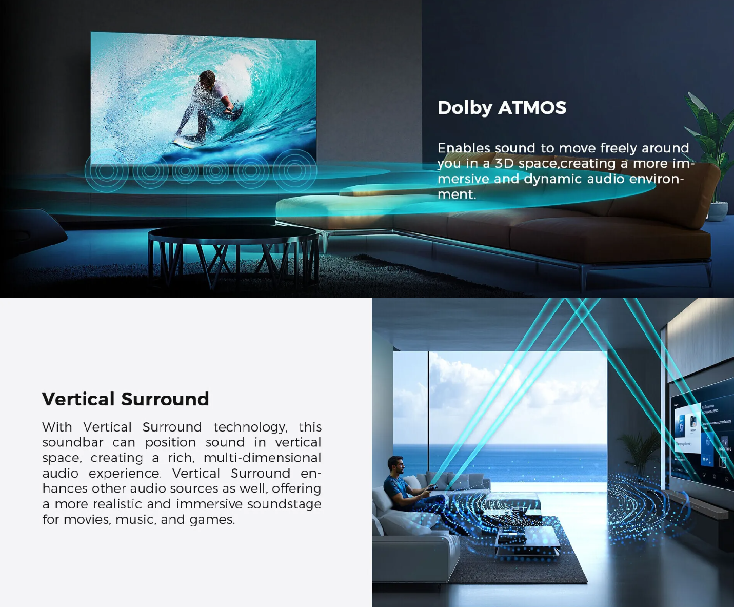 • 2 upward-firing speakers & 2 surround speakers