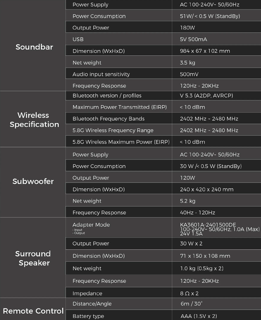 • 5.1.2 channel with wireless subwoofer