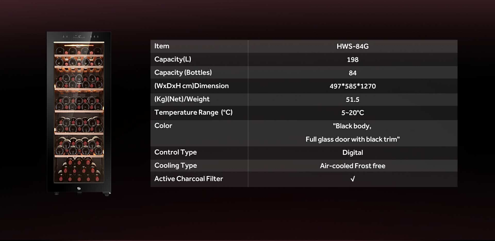 HAIER WINE CHILLER HWS-84G (198L) BLACK