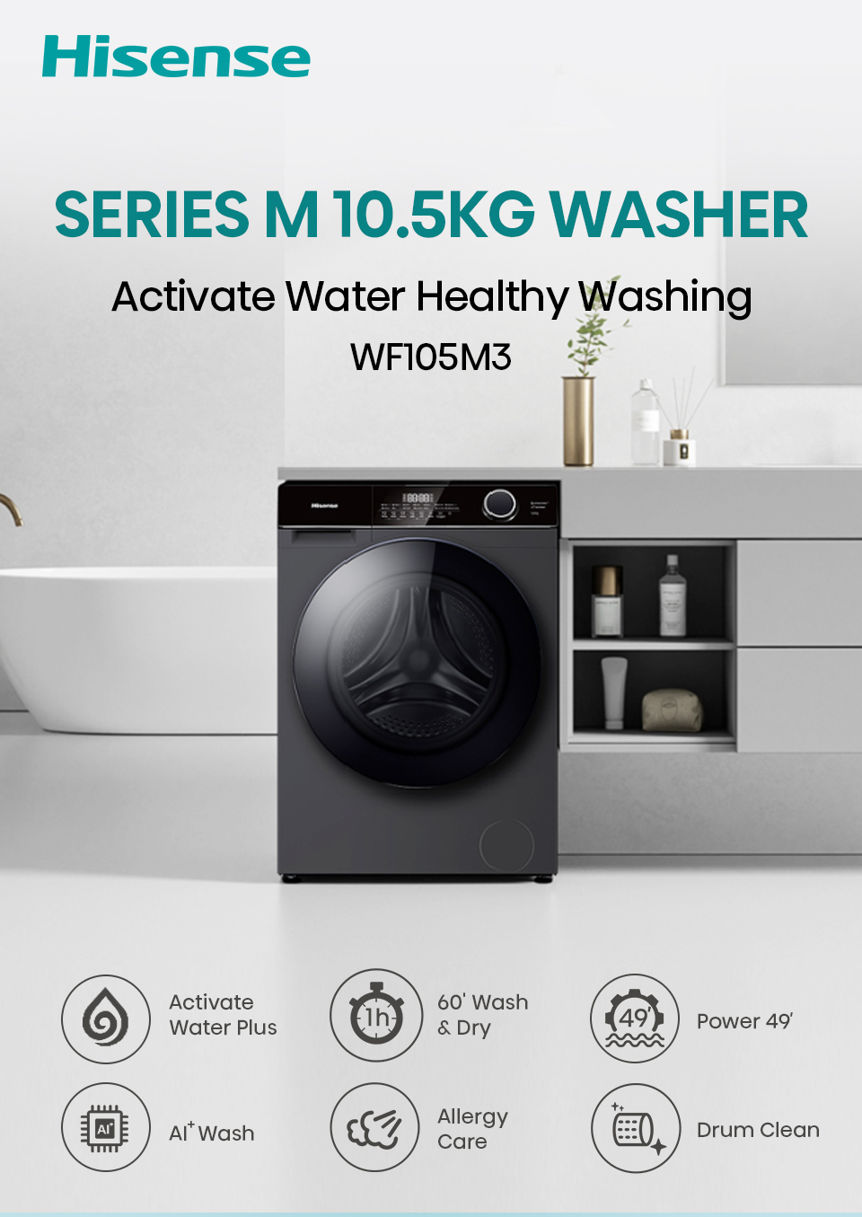 HISENSE FRONT LOAD WASHER WF105M3 (10.5KG)
