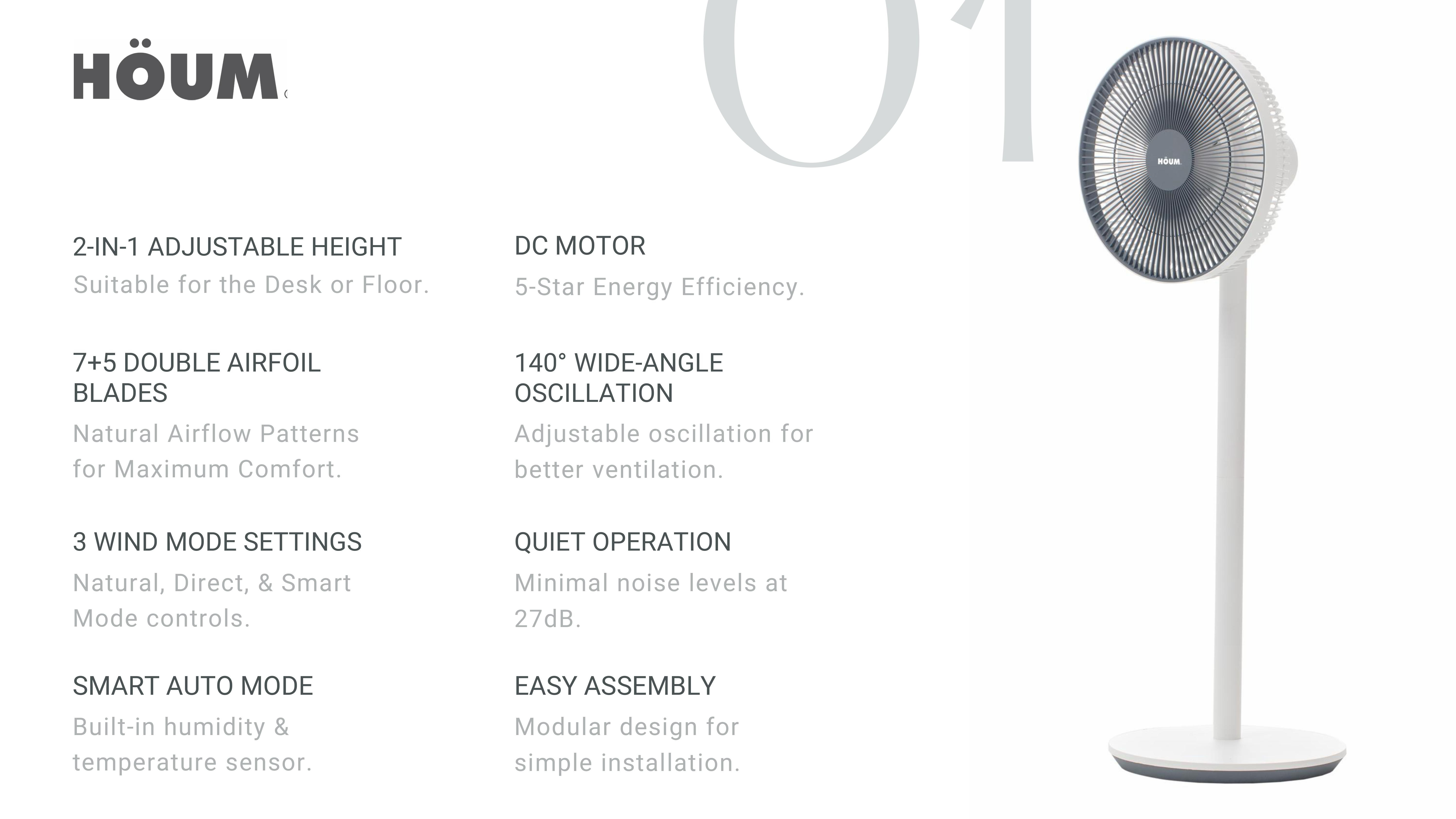 The HÖUM® X12 features a smart auto mode with a built-in temperature and humidity sensor, and a DC motor for 5-star energy efficiency. This easy to assemble fan is also perfect for quiet operation needs, with minimal noise levels at only 27dB.