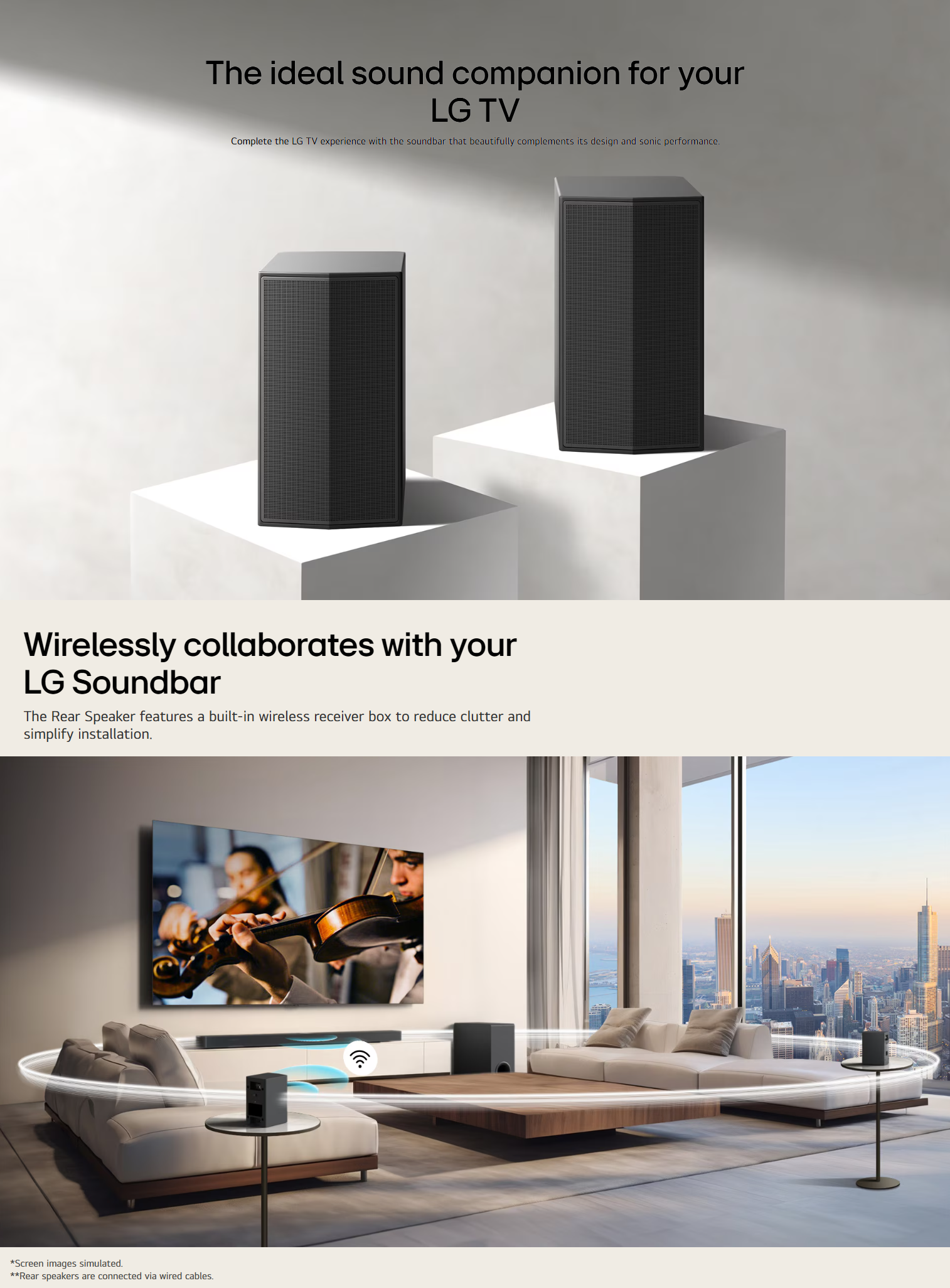 • Make your home theater more immersive with 2.0 Ch rear surround speakers