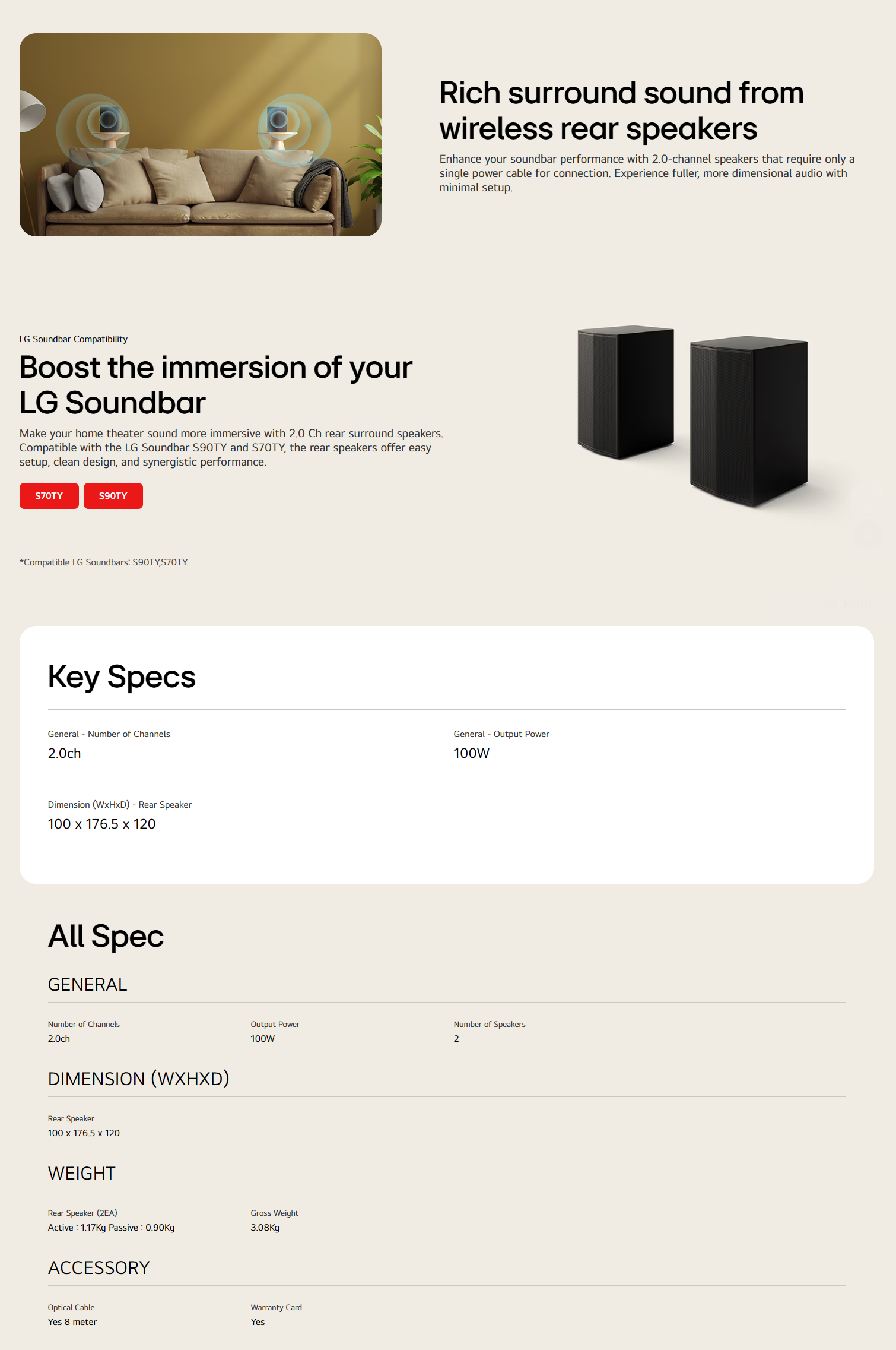 LG WIRELESS REAR SPEAKERS SPT8-S