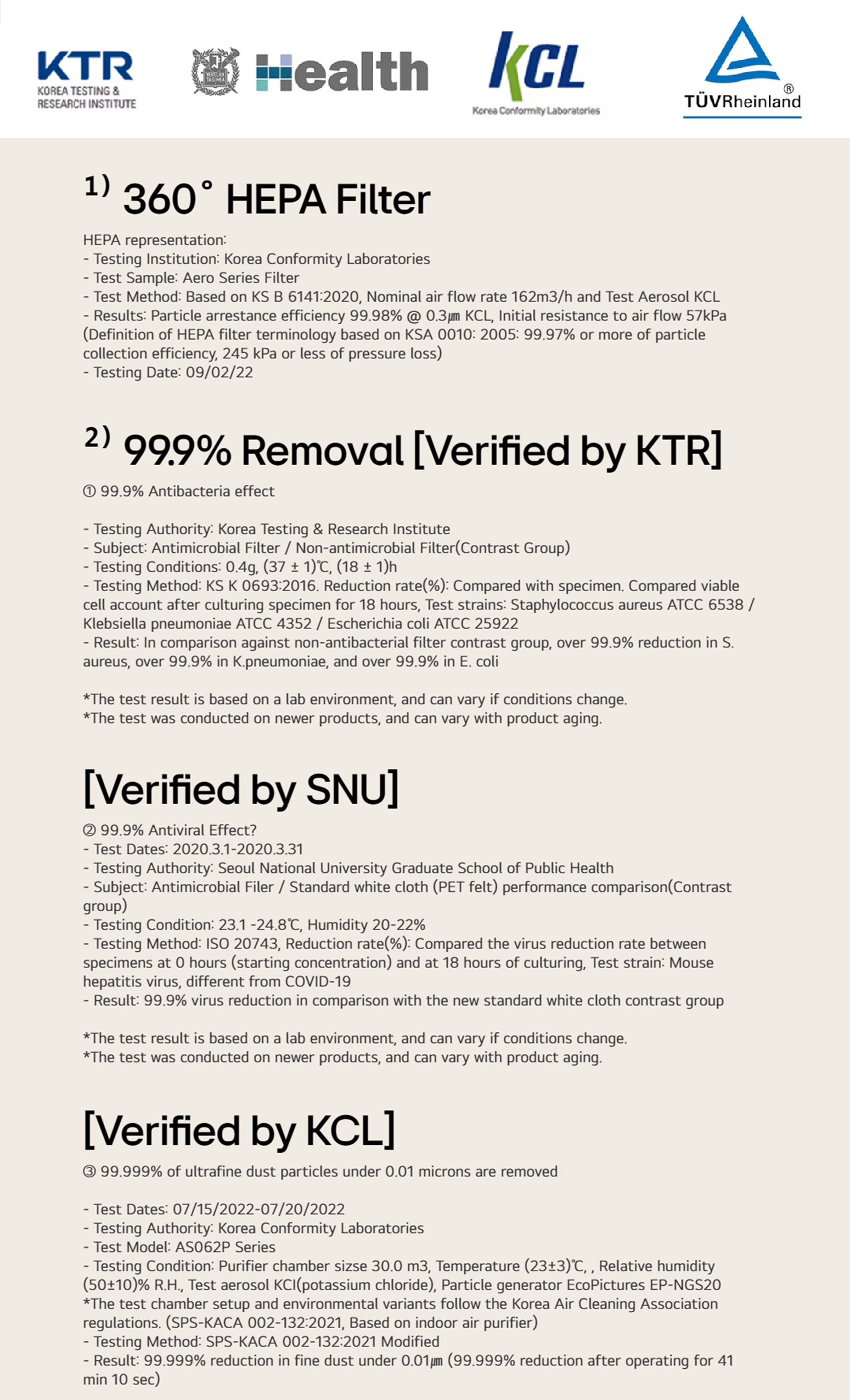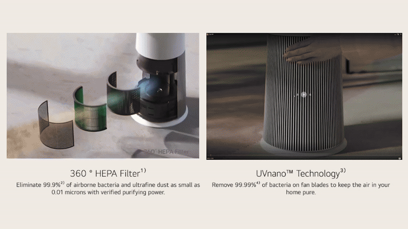 • 360˚ Air Purification : 360˚ HEPA Filter, UVnano™ Technology