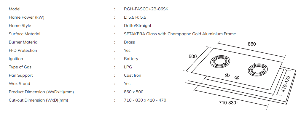 RUBINE BUILT-IN GAS HOB RGH-FASCO+2B-86SK