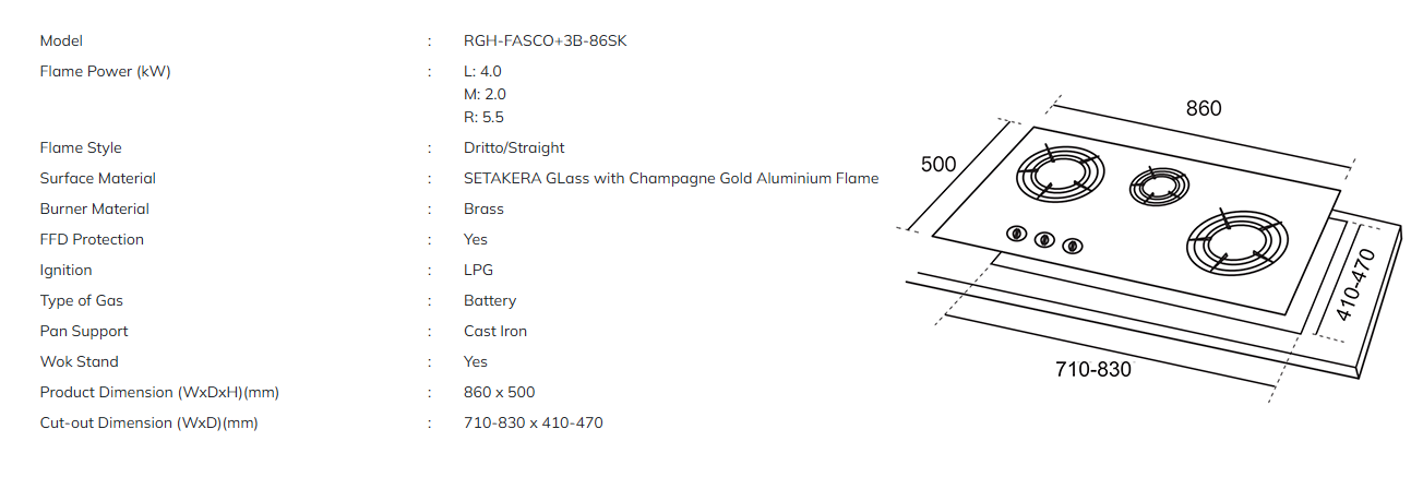 RUBINE BUILT-IN GAS HOBRGH-FASCO+3B-86SK