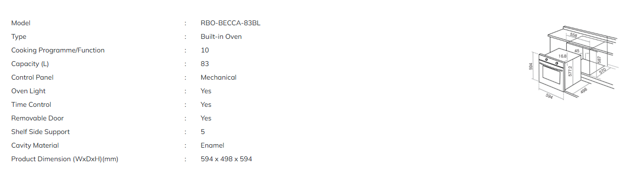 RUBINE BUILT-IN OVEN RBO-BECCA-83BL