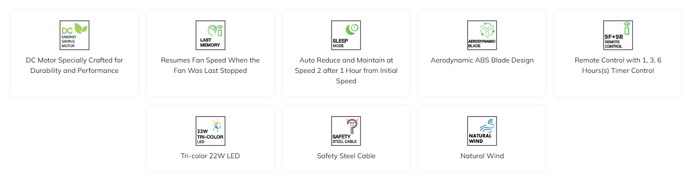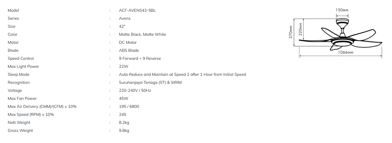 RUBINE CEILING FAN ACF-AVENS42/56-5BL-MB/MW (LED)