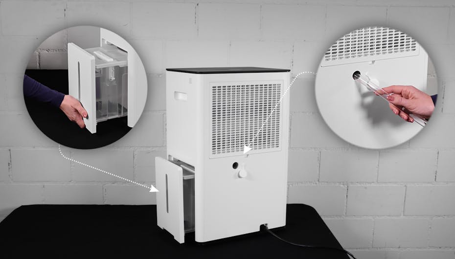 The dehumidifier Lukas offers the option of permanent drainage with the drainage hose or drainage via the water tank.