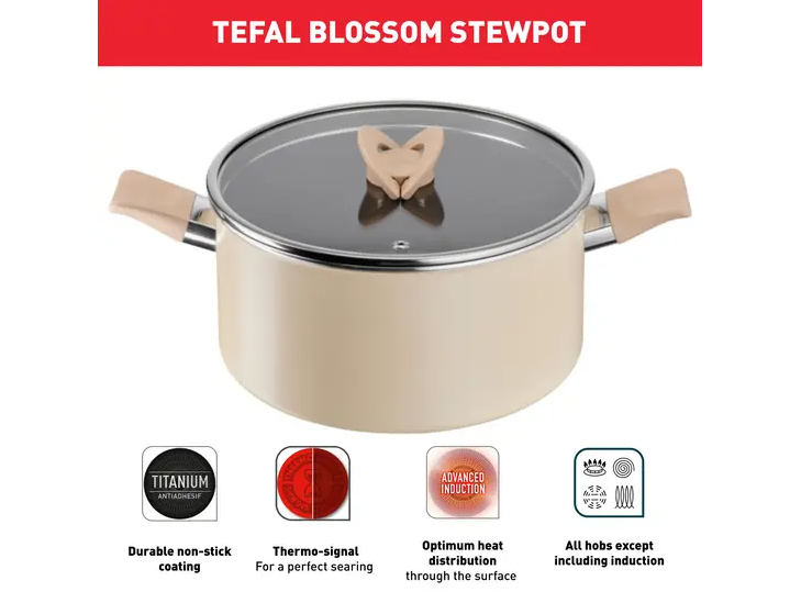 TEFAL COOKWARE BLOSSOM STEWPOT 20CM G16744 INDUCTION BASE