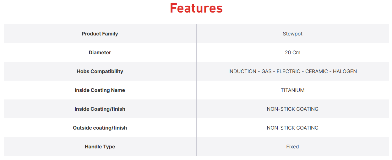 • Titanium durable non-stick coating for outstanding performance and safety, meaning no PFOA, no Lead, no Cadmium