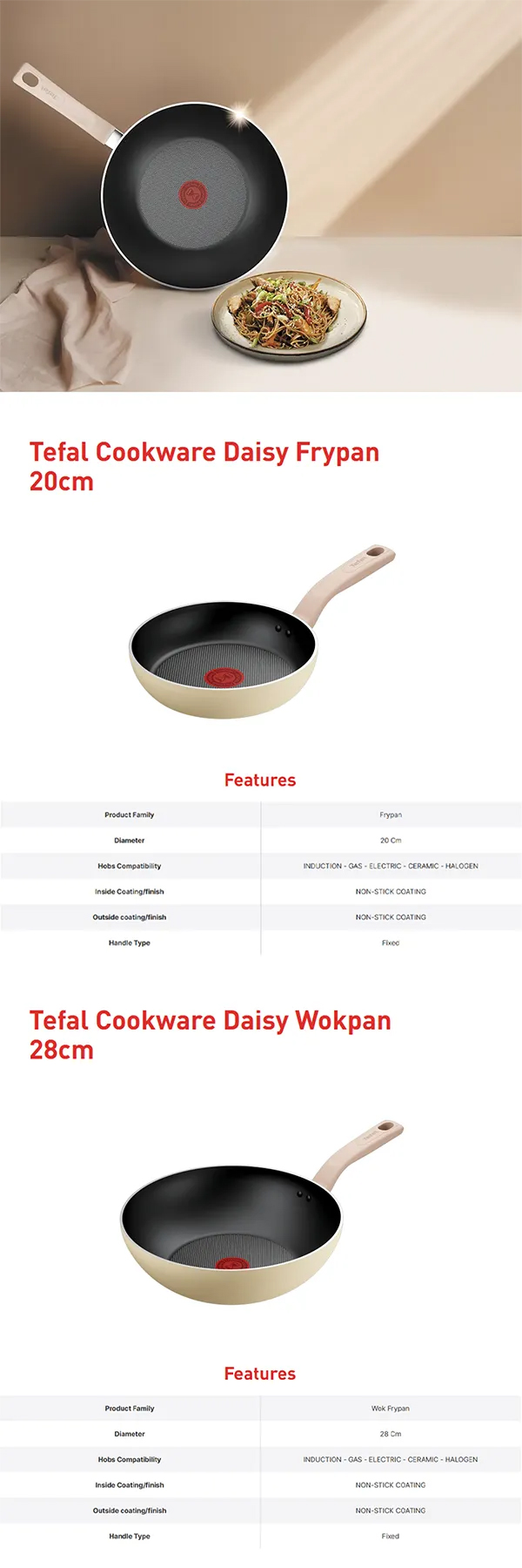 TEFAL COOKWARE DAISY 2 PCS SET G167S295 WP28+FP20 (INDUCTION BASE)