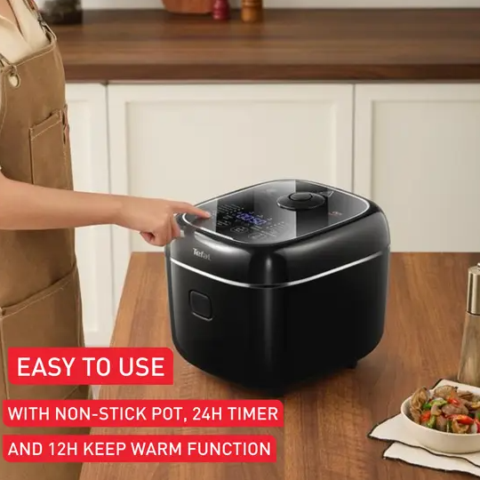 • Convenient touch controls, a non-stick pot for easy clean-up, a 24h preset and timer, and a 24h keep-warm function