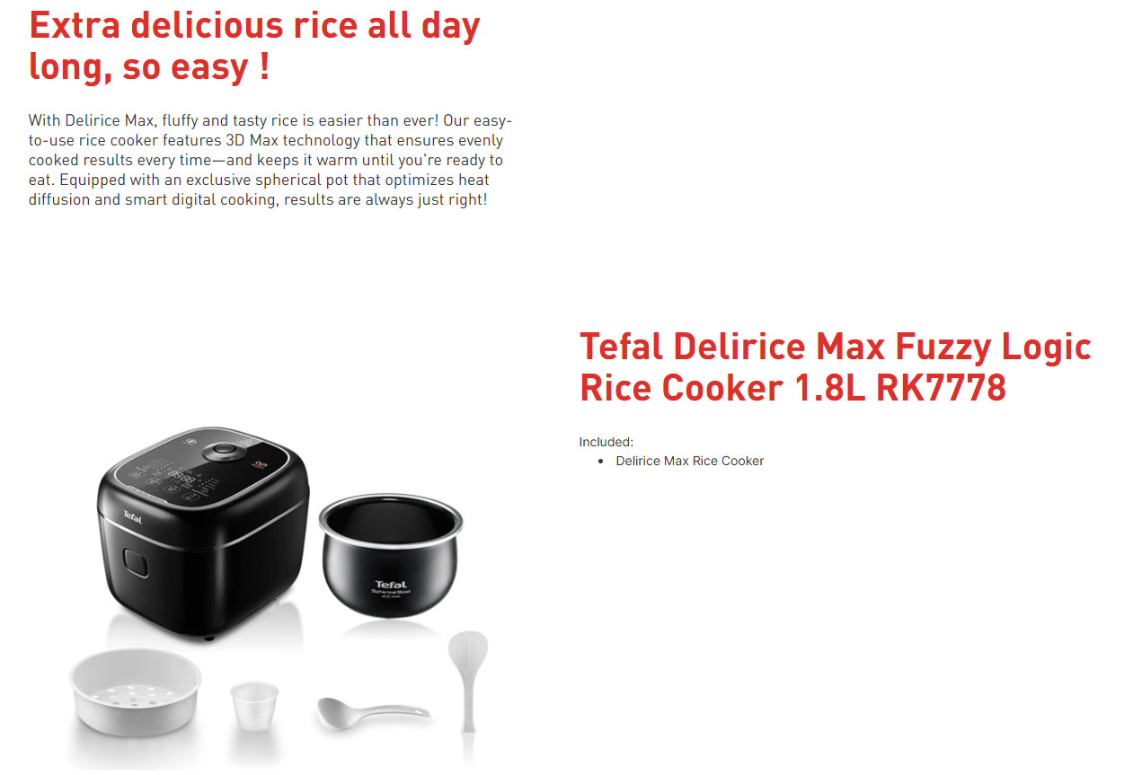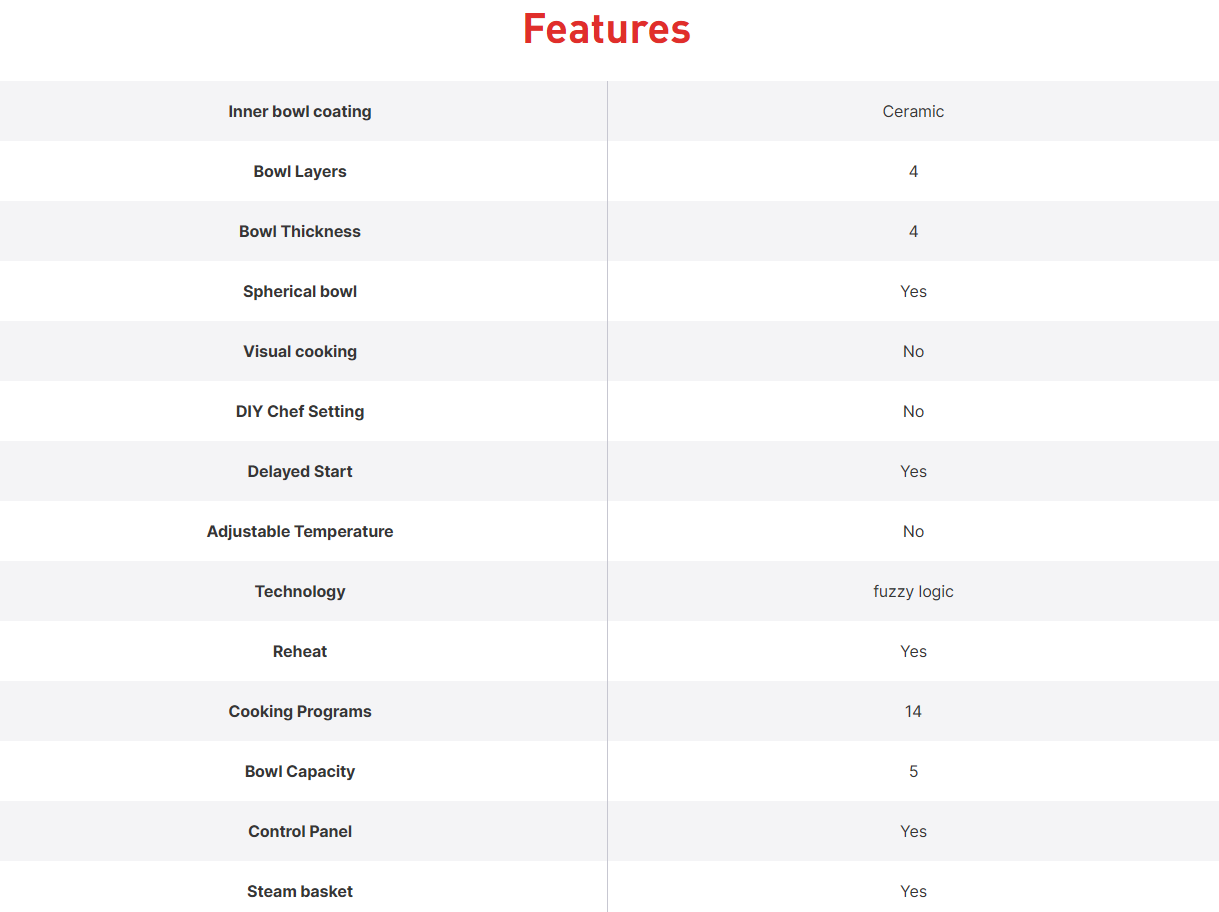 • Rice cooker offering 3 rice textures and up to 13 cooking programs—for endless possibilities