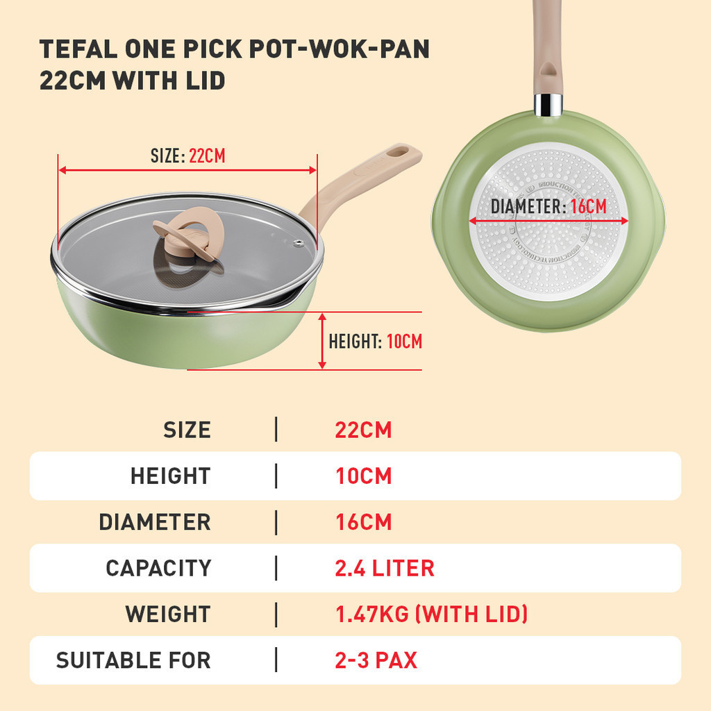 TEFAL ONE PICK POT PAN 22CM G1802524 (YELLOW) INDUCTION BASE