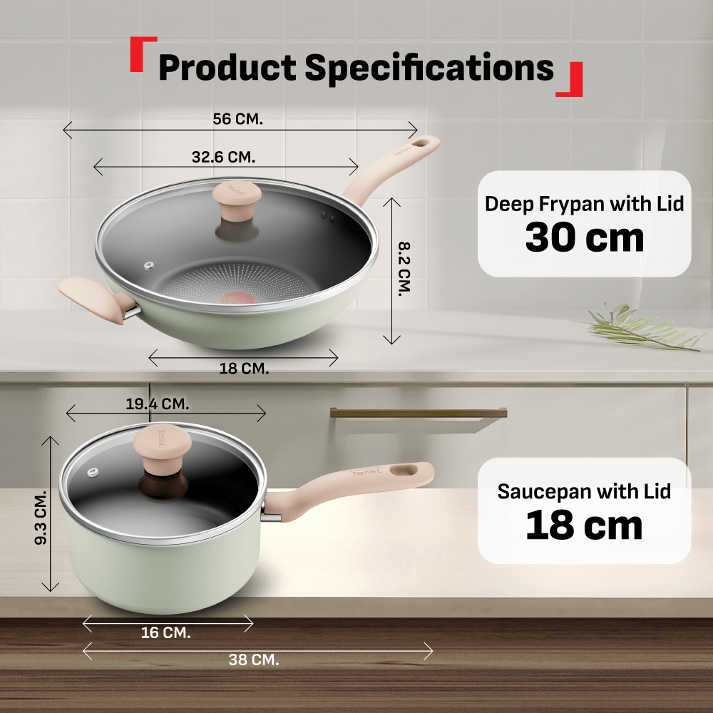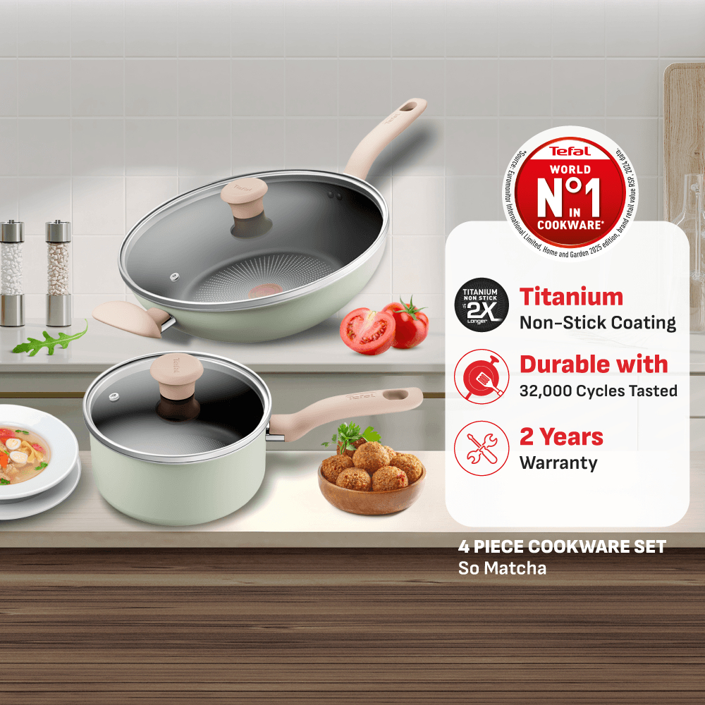 TEFAL SO MATCHA NON-STICK COOKWARE SET - 4PC SET WITH LID 30CM + 18CM G179S4 (INDUCTION GIFT BOX)