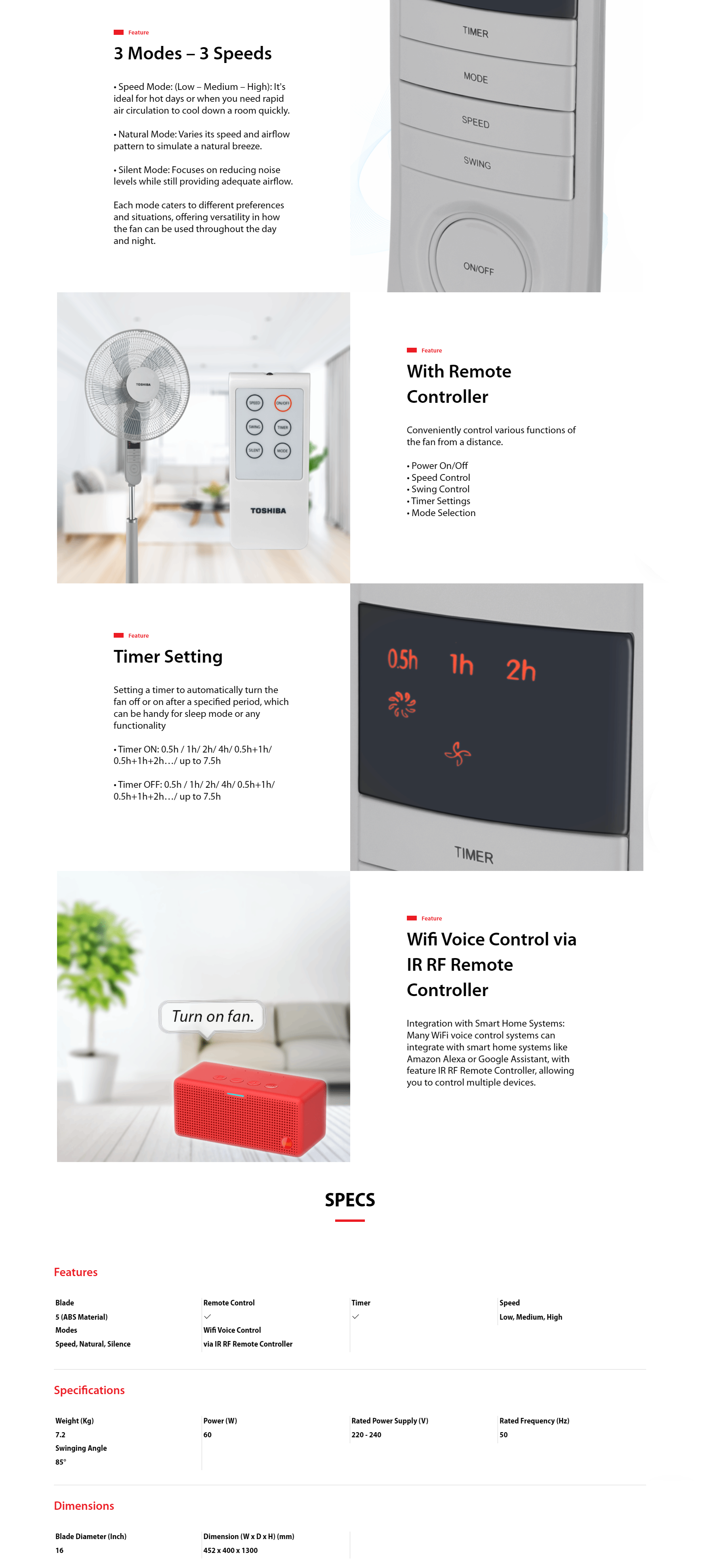 TOSHIBA STAND FAN 16'' F-ASB60MY(H) WITH REMOTE